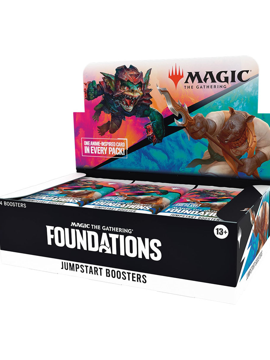 With Jumpstart, playing Magic is a breeze: all two players need to do is crack two packs, shuffle, and they're ready to begin! Whether players are learning the ropes or spell-slinging pros, Foundations Jumpstart brings a fresh wave of fun for everyone at the table. A full display of Jumpstart Boosters supports players who want to explore tons of fun combinations!